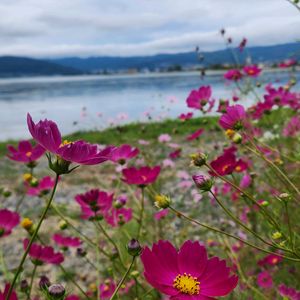 秋桜 コスモス お出かけ先 曇り空の諏訪湖 一周16㌔ウォーキング へとへと ②③諏訪湖周りにある『かりん』