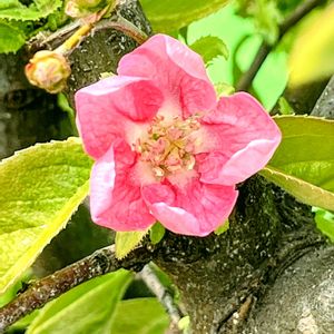 今日のお花✿❀ カリン(花梨)💟 バラ科カリン(ボケ)属の果樹🌳 可愛らしい濃いピンク🩷の花🌼が 梨に似た実をつけるから(花梨)💠 🏷️ピンクワールドへようこそ 🏷️おしゃれな土曜日♪