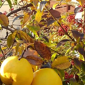 カリン バラ科の落葉高木 カリンの実、この季節にまだ頑張っています!がんばれー😆