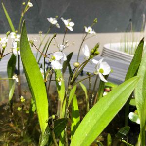 昨日はいくつもあるプランタの水槽でメダカの卵 を見ていたら👀 ナガバオモダカの花💠が咲いていたのでpic📸してみました🎵 中ではヒメダカと黒メダカが仲良く遊んでいたので❗️ そこにあった卵は ふたりの二世が見られるかもね⁉️