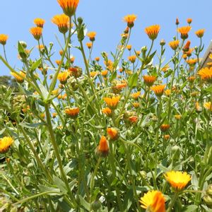 💠カレンデュラ💠(フユシラズ) 寒さに強いお花ですが、猛暑の中でも元気に咲いてます😄 お迎えして4年目になりますが、零れ種でどんどん増えてます🎵