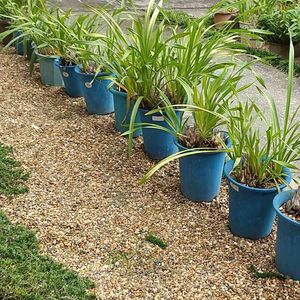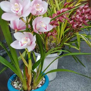 シンピジューム 夏の間 半日陰に置いていたシンピジュームの鉢を中庭の陽のあたる場所に移動させました。