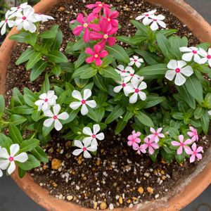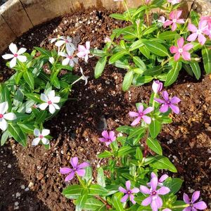 ニチニチソウ・フェアリースターが どんどん増えて大きくなってます いつまでこんなに綺麗に咲いてくれるんだろう…可愛いなぁ🌸🍃🍃