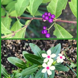 上…庭に紫色の実がなっていました。名前が分かりません。 下…夏から咲いているフェアリースター❁¨̮ 花数は減ってしまったけれど、まだ咲いてくれています。 小さくて、白くてとても可愛いです🧚🧚♂️✩.*˚♪。.:*・♡
