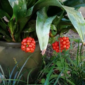滑り込みで😅 オモトだよと言われて鉢ごと11月に頂きました💕 育てる自信があまりない私です😆