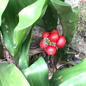 この植物の名前を教えてください!(>_<) クミさん、えきありすさん、ゆりちゃんさん、 ごんちゃんさん が回答してくださりました! 回答を元に調べたところ、オモトで合っていると思います! 沢山の回答ありがとうございました! *・゜゚・*:.。..。.:*・'(*゚▽゚*)'・*:.。. .。.:*・゜゚・* 追伸 …フォロワーが500人になりました!! 沢山のフォローありがとうございます! これからも宜しくお願いします!☆*:.。. o(≧▽≦)o .。.:*☆