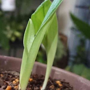 おもとに花⁉️がつきました〜㊗️ 頭の先っちょに 白いふわふわが 可愛い〜🤗❣️