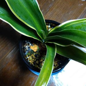 ■東洋蘭とか万年青とかの続報 一昨日植え替えたクンシランの土が余ったので、1月末に衝動的にポチって以来、水ごけのままで室内放置だったオモトと春蘭と寒蘭をクンシランの土で植え替えました。果たして、土が合うのか合わないのかは定かではございませんが、何とかなるでしょう。 最高気温22℃、最低気温13℃ (左から) ・斑入り万年青(オモト) 品種不明 ・春蘭(シュンラン) 斑入り 玉殿の松 ・和蘭 神龍爪 ・寒蘭(カンラン) 楠山産チャボ ・斑入り万年青(オモト) 筑紫の花