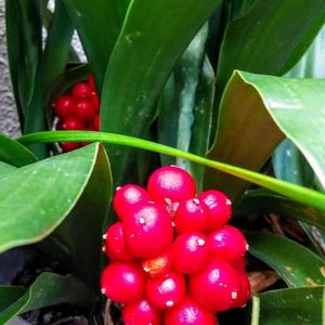 こんにちは😃 オモト(万年青)💞立派な実がなりました❤️ 縁起の良い植物なので綺麗な実が付いて嬉しいです😊💞 今年はまだ赤い実を狙った鳥さんは来てません😅