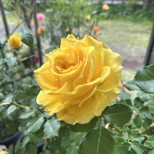 リビングの椅子から見える薔薇 花のつきで、鉢変えしてます