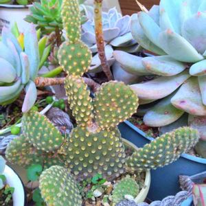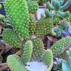 オプンチア バニーカクタスとゴールデンバニー葉挿しに根が出てたので土に植えました^ ^