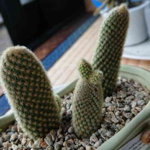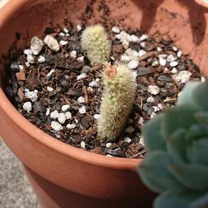 ゴールデンバニー この冬ずっと変化がなかったチビ🐰 ポコポコ出始めました(*´ω`*)✨ でも、一気にポコポコでなくても…(ー ー;) できれば触りたくない子 植え替えしたくない子…😅 とりあえずどんな形に進化するか見てから 完全装備で挑みます(^◇^;)笑