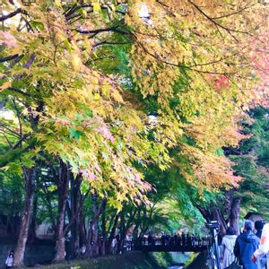 今晩は☁️ 池の周りの🍁もみじ綺麗な緑です(⌒_⌒) 木陰になって涼しいですよ( •ω•ฅ).。.:*♡