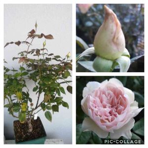 一番元気な クロッシェ🌹2号さん 1号は去年カミキリムシ退治の薬害で枯れました😨 初めてで 濃度 薬剤回数 多過ぎたみたい(;>_<;) 5月にお迎えしてから11月を除いて毎月開花🎶 右下は10月のお花🌹 植えられていた土が良いのだと実感しました。 七個 蕾あるけど全部咲くかな🤗 咲かせて大丈夫かな🙂