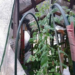 背が高くなりすぎて、かわいそうだったので、ビニールを取ってハウスに避難中のこあまちゃんです。コンテナは重くて大変です。