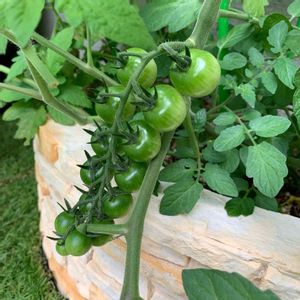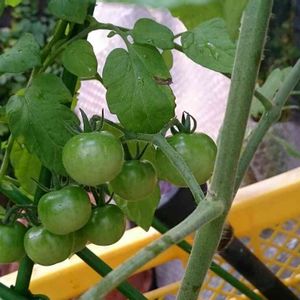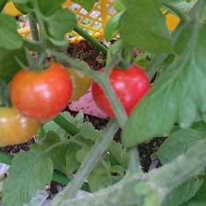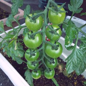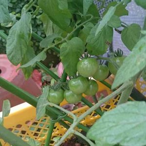 今日のアイコ、こあまちゃん プランターが小さいのでだいぶ混み合ってます💧 実の方は順調に育ってくれてる🍅