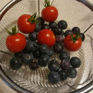 今朝もこあまちゃんとブルーベリーを収穫しました。美味しそうです。