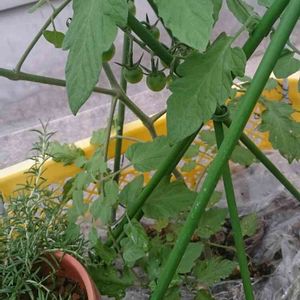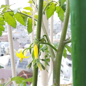 ミニトマト♪ たった二日でも大きくなってるのがわかる成長っぷり❗️ 花も咲いて、かわいいです☺️