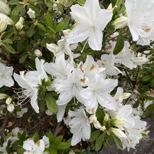 久々の雨でつつじの花が開きました。 白つつじは寒さに弱く霜に遭うとすぐに茶色になってしまいます😭 白つつじは咲き分けです
