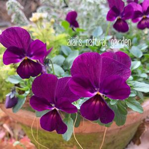 アンティークビオラ こんなシックな色のビオラも素敵です 金魚草シルバードラゴンとマトリカリアの鉢の空いてたスペースに寄せ植え