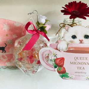 こんにちは〜 昨日、長女ちゃんよりちょっぴり遅い 『母の日プレゼント』🎁 ガーベラさんはベランダで咲いたのをカットしました❤️ 可愛いにゃんこのパッケージの中身はストロベリーTea🍓✩°。⋆♡*° 甘い香りがお部屋に漂っていてとっても美味しく頂きました☕️