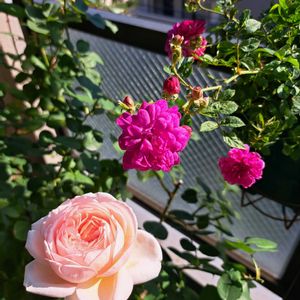 アンブリッジローズ 冷たい雨に打たれながら 咲きました。 この子は色良し、香り良しで 虫もつかなくて…ほんと魅力的😍 シュラブですがそんなに長く伸びていません。その分?ベイサルシュートを最近出したり蕾がどんどんできて。すごいバラです💕 ②メルヘンツァウバー 色が明るい薄ピンクになりました🩷かわいい〜😍 場所が良かったみたいで雨には当たらなかったみたいです☺✨ まだまだきれい でももうすぐ散ってしまいます 嫌だ…!
