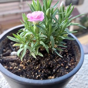 こんにちは🙂↕️ 本当に暑いなぁ〜🥵💦 我が家の【ポットカーネーション🩷プリティシリーズ さくら🌸】 よ〜く咲いてます😆🎶 一緒にお迎えした【いちご🍓】は、昨年の暑さで夏越ししきれずに終わってしまったけれど、【さくら🌸】は頑張っています🥹