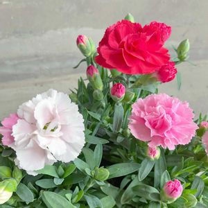 ❁. 。ポットカーネーション’プリティ’。.❁ 可愛らしいサイズ感が特徴の ポットカーネーション’プリティ’🌸 プリティシリーズは サカタのタネ育成の 栄養系ポットカーネーション◌̥*⃝ 花色は『いちご』『みるく』『あかね』など 6種類の色があります✽.。 ピンクや白、赤など 可愛らしい色味ですよね💕 花付きのよさとサイズ感から カゴアレンジや寄せ植えに人気です🧺 *育て方* 日当たりのいい場所を好みます。 水やりは土の表面が乾いたらあげてください。 花終わりはこまめに摘み取ってください。