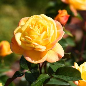 「ストライク・イット・リッチ」 系統 Gr 花色 オレンジイエロー ※弁縁がピンクを帯びる 浜寺公園バラ園2025/11/15