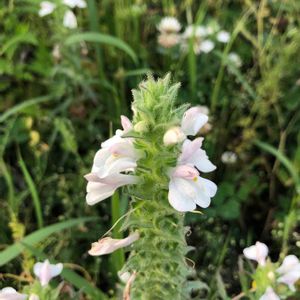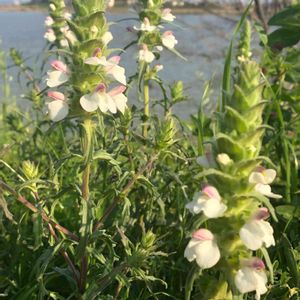 散歩道で見つけたこの白い花🌼 堤防にたくさん咲いていた🌸 ルピナスに少し似てある感じがする🤗 「君の名は」 ヒサウチソウ ハマウツボ科の帰化植物のようです🌼