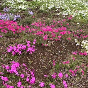 鶴見川 シバザクラ(芝桜)ハナシノブ科フロックス属.の多年草、別名 ハナツメクサ、英名 モスフロックス 🌼花言葉 「臆病な心」「一致」「合意」「忍耐」「希望」