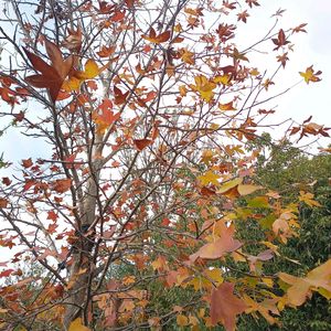 『フウの紅葉🍁とクチナシの実』 📷富山県中央植物園🌿にて☺ (12月6日) 今年も紅葉のフィナーレを飾るのは、やはり『フウの木』。 近くにはセンダンの実が艶々として見頃になっていました( ꈍᴗꈍ)🍊