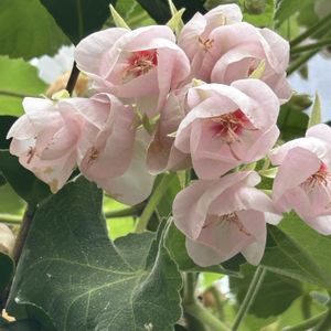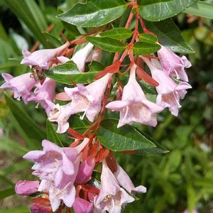 アベリア繋がりで🙇 2024.7月 家族の診察がすむまで暇潰しに行った公園に 「で、デカ!」と思ったピンクのアベリア よく見る普通のアベリア花より大きい😳 花の中にオレンジ色の網目模様が見えます。 🔍️するとアベリア·エドワードゴーチャーだとか