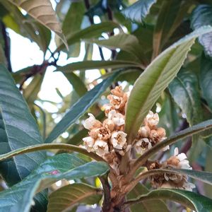 今日のお花 ビワ いつも行く山の公園のお寺側にビワの木があります。 1⃣2⃣ 昨年12月3日 お花が咲いてました。 3⃣ 今年5月11日 かなり実が大きくなりました。 4⃣ ハマイヌビワ 2月14日 小石川植物園 温室