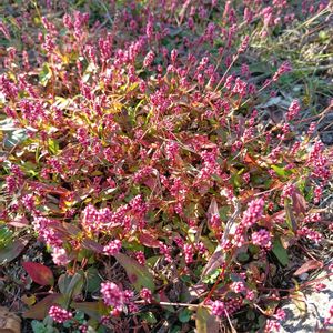 イヌタデ(犬蓼)タデ科イヌタデ属 イナタデの葉っぱ🌿が紅葉して綺麗です。11月22日 日本全土の道ばたや畑、荒れ地などにごくふつうに生える。 高さ20〜50cm。 茎はふつう赤みを帯び、下部は地をはう。 葉は互生し、広披針形〜披針形で先はとがる。 托葉鞘は長さ7〜8mmの筒形で、ふちに長い毛がある。花序は長さ1〜5cmで、紅色の小さな花を多数つける。まれに白色の花もある。花被は長さ1.5〜2mmで5深裂し、花のあとも残ってそう果を包む。 そう果は3稜形で光沢のある黒色。 花期は6〜10月 🏷 木曜日は桃色