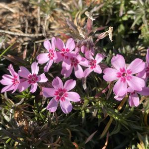 シバザクラ(芝桜) 別名: ハナツメクサ(花詰草、花爪草) 科名:ハナシノブ科 属名:フロックス属 原産地: 北アメリカ シバザクラの雄しべ: 小さな花の中に隠された、とても大切な役割を担っています。ひとつひとつの花は小さくても、その構造は精巧に作られていますね。 形と色🩷 雌しべ: 先は3つに割れる。 萼も5裂し、萼片は針形で短毛が密生する。 開いた萼の上で、楕円形で先の尖った蒴果が実る。 雄しべの色と形: 花の中心部にあり、細くて短い針のような形が特徴です。 花びらに比べると、とても控えめな印象。 雄蕊の色は一般的に花と同じか、少し濃いめのピンクや紫をしています。 白いシバザクラだと、白っぽい雄しべが見られます。
