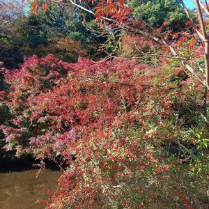 ピラカンサ(バラ科 トキワサンザシ属)① 別名 ピラカンサス 和名 トキワサンザシ タチバナモドキ 公園の池のそばにあるピラカンサ(トキワサンザシ) モミジやハゼが紅葉して、とても綺麗でした。 4⃣5⃣ 白いお花も満開で綺麗です。 5月7日 ピラカンサは、春に白い花を咲かせ、秋から冬にかけて赤やオレンジ色の美しい実をつける常緑低木です。トゲがあるため、刈り込みに強く、生け垣や壁仕立て、盆栽などに広く利用されています。 主な特徴 花: 5~6月頃に、白い小花を咲かせます。 実: 10月頃から赤やオレンジ色に色づき、晩秋から冬にかけて美しい姿を観賞できます。 葉: 濃緑色で光沢があり、一年中緑を楽しめます。 トゲ: 枝には鋭いトゲがあるため、作業時には注意が必要です。 主な種類 トキワサンザシ: 最も多く栽培されており、鮮やかな赤い実をつけます。 タチバナモドキ: オレンジ色の実が特徴です。 モハベ: 赤く光沢のある実をつけます。 ヒマラヤピラカンサ: 実が小さく、実つきが良い品種です。