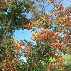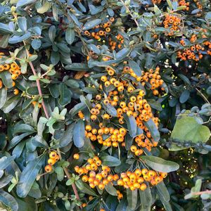 ピラカンサ 🏷️今日のお花 バラ科トキワサンザシ属 バラ科の常緑低木。 実色が濃紅色のトキワサンザシと黄橙色のタチバナモドキの2種が一般的です。 強健種で育てやすく、自然交配により容易に実成りが楽しめます。