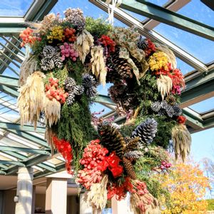 『今年の植物園の巨大クリスマスリース』 📷富山県中央植物🌿にて☺ (12月6日) 今年のクリスマスリースは、少し小ぶりながらも明るい素材を多く使った繊細な仕上がりになっていましたよ(*,,•ᴗ•,,)🍊