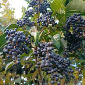 トウネズミモチ(唐鼠黐)モクセイ科イボタノキ属 ジムの駐車場裏にあるトウネズミモチ。 黒くて目立たない果実です。 ツルウメモドキを見ている時気がつきました。 ネズミモチとの違いは実の形、トウネズミモチは球形に近く、葉っぱは光にかざすと葉脈が見えることです。 3⃣ 葉っぱを光にかざすと葉脈が見えます。 上 表の葉 下 裏の葉 4⃣ オナガ(鳥)がいろんな実を食べにきてます。 葉っぱに隠れて頭だけ見えます。 5⃣ ナンキンハゼの実、ヤマハンノキの実でリースを作りました。