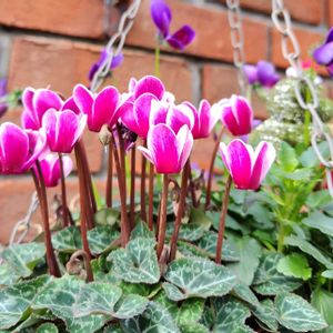 シクラメンのハンギング❀ 可愛く咲き揃っていました♡ ウィンドウはクリスマス🎄