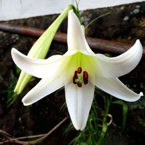 鉄砲ユリでいいのかなぁ😉💕 真っ白で綺麗です タカサゴユリのような筋はなさそうです🙄