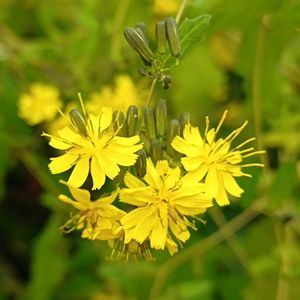 ヤクシソウ(薬師草)キク科アゼトウナ属 山の公園にヤクシソウが咲いてました。 ここで見るのは初めてです。 かなりたくさんのお花が咲いてて綺麗でした。 草丈も1m以上ありました。 北海道〜九州の山野の日当たりのよいところに生える。 全体に無毛で、よく分枝して高さ0.3〜1.2mになる。 茎は赤紫色を帯びるものが多い。 根生葉は長い柄のあるさじ形でかたまってつき、花期には枯れてない。 茎葉は互生し、長さ5〜10cm、幅2〜5cmの長楕円形または倒卵形で、ふちには浅い鋸歯があり、基部は後方に大きくはりだして茎を抱く。 裏面はやや白っぽい。 枝先や上部の葉腋に直径約1.5cmの黄色の頭花を数個ずつつける。 総苞は黒っぽい緑色で長さ7〜9mmの円筒形。 花のあと下部は膨れて硬くなり、下向きになる。 そう果は黒褐色で長さ2.5〜3.5mm。冠毛は純白色。 花期は8〜11月 🏷 月曜日にビタミンカラー