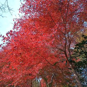 近くの山(標高500m)の紅葉が綺麗でした。 いつもは空いてるキャンプ場も今日は賑やかでした。 モミジが真っ赤で綺麗でした。
