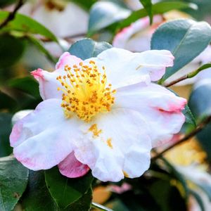 ⭐GS🍀今日のお花『サザンカ』 📷敦賀市常宮神社⛩️にて☺ (11月23日) 境内では艶やかなサザンカが咲き、イチョウの紅葉が見頃を迎えていました(,,ᴗ ᴗ,,)🍊