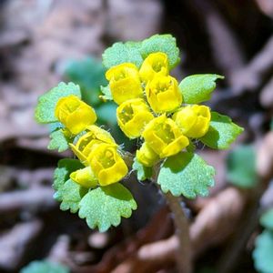 裏高尾で出会ったヨゴレネコノメの花、黄緑色の苞が綺麗です💚🌿 日本固有種です。 葉に白い斑があり汚れているように見えるのでヨゴレネコノメと名前が付いたという説もありますが、この葉は成長するにつれて葉が緑色になって来たようです。 (ペロさんに教えて頂きました) ユキノシタ科 ネコノメソウ属 4月半ばに撮りました。
