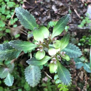 裏高尾にて⑩ ヨゴレネコノメ 濃い緑色の葉に灰色をおびた模様が入り、それがほこりをかぶったように見えるため「汚れ猫の目」の名がつけられたとのことです。 黄色い包葉も特徴です。葉は楕円形で長い柄があり対生。 📷 2019.4.13