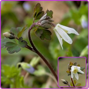 春の植物観察会でイヌノフグリ見せて頂きました 2️⃣のお花どこにあるかわかりますか? 絶滅危惧種になっているそうです 散歩で見るのはオオイヌノフグリかフラサバソウ それよりも小さくお花は2ミリくらいでした 5️⃣はヒメウズ(姫烏頭) キンポウゲ科 お花4〜5㍉