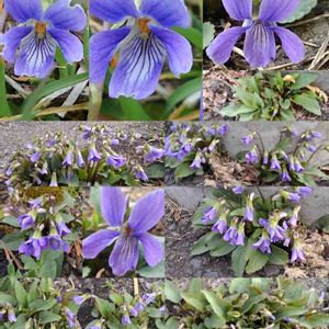 庭に咲くスミレ✨ 下のは、小さくて葉の裏も紫色 名前を教えて下さい🙇