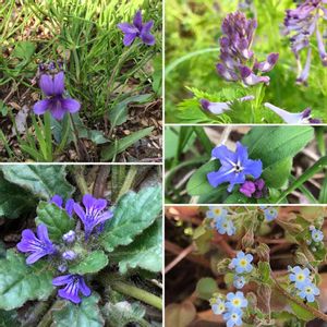 〝花友さんとお散歩 ~♫〟⑤ 右上…ムラサキケマン(ケシ科) 日当たりの良い草地に ~💜 右中…ホタルカズラ(ムラサキ科) 明るく乾いた所が好きみたい♡🎶 青い花弁の中央に白い縞が入っていて ~お洒落(o^^o)v 右下…キュウリグサ(ムラサキ科) 道ばたに普通に生えているけれど…とてもとても小さくて ~ルーペで覗いても(>_<) 優しい空色で上を向いて健気に咲いて ~可愛い♡🎶 左下…キランソウ(シソ科) 地面にへばりついて、横に広がって ~立ち上がることがなく美しい青紫の花があちこちに咲いてる💜 人のいない神社は ~寂しいけれど…私の大好きな春の花たちがいっぱい*\(^o^)/* 右上…ヒメスミレ(スミレ科) 日当たりの良い草地にたくましく咲いているスミレ~💜 そろそろ ~ちゃんと名前を覚えてあげようかな❣️ 『私は、ヒメスミレだよ(^-^)v』